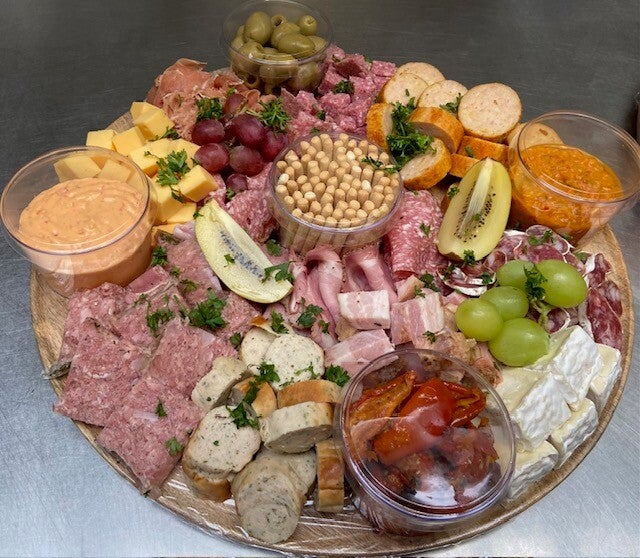 Deze heerlijke plank is voorzien voor 5 personen , De prijs voor deze tapas is 12 euro per persoon Er word ook 20 euro waarborg gevraagd voor de plank , bij het terug inleveren word dit terugbetaald